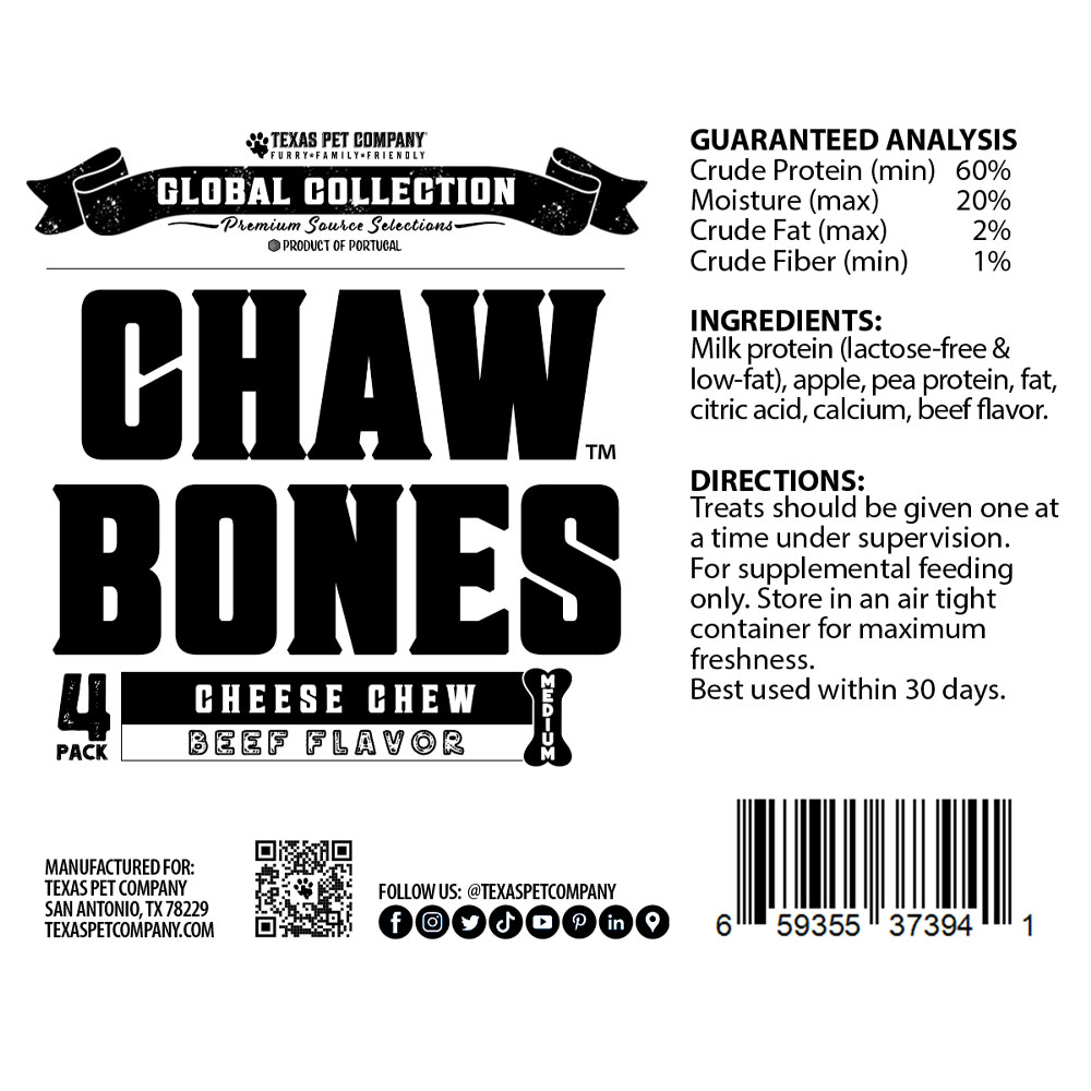 Chaw Bones Cheese Chew For Super Chewers - Beef Flavor - Global Collection Premium Source Selection from Texas Pet Company