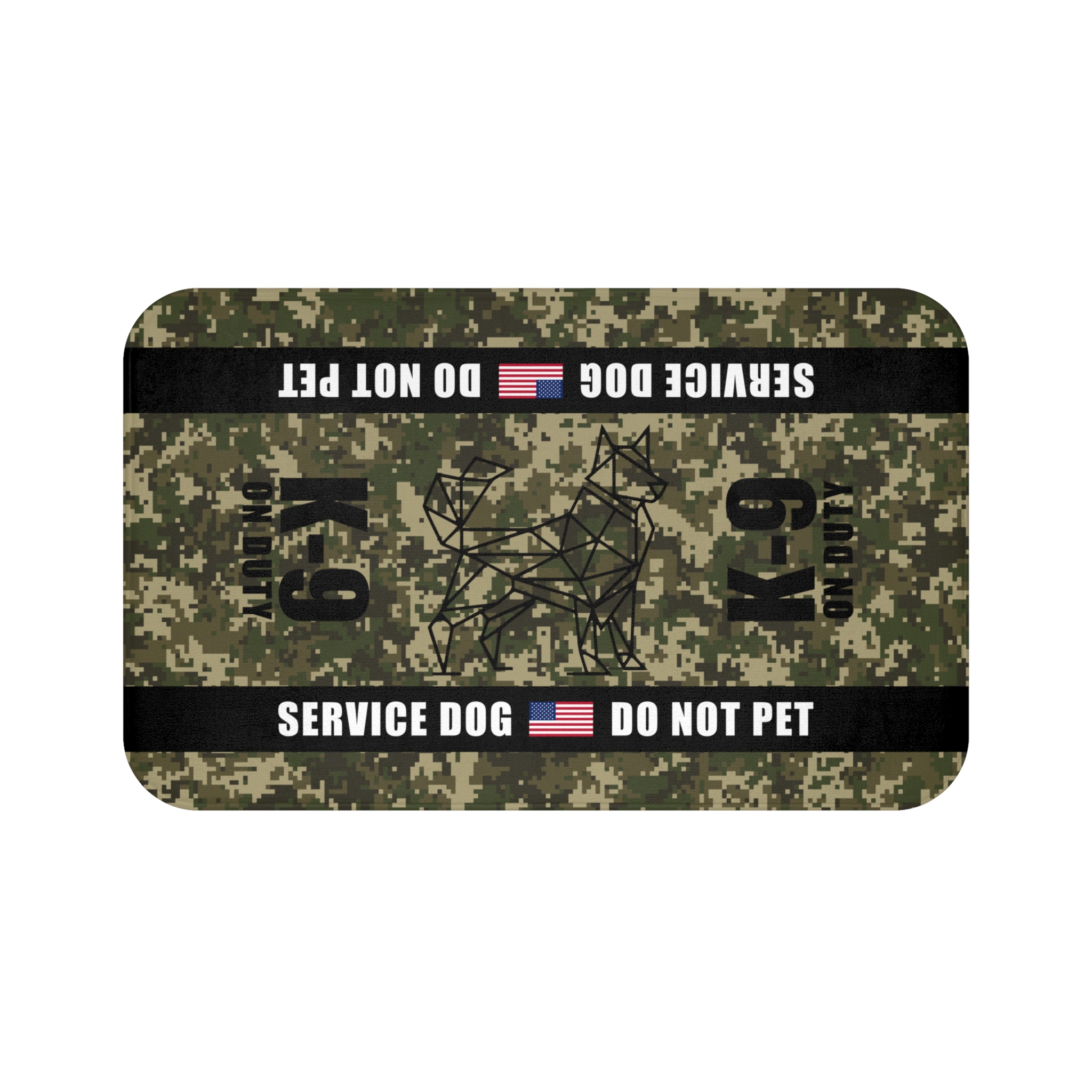 Whether you’re on duty, traveling, training, or simply out in public, this travel mat solves a common problem: working dogs often have nowhere designated to rest comfortably, and without visible identification many people may not realize the dog is “on duty.” This mat changes that. Make public outings easier and provide your K-9 Military Service Dog with a safe resting spot. Designed specifically for service and working dogs, this mat provides a designated resting area while reinforcing their status as active-duty K9s.