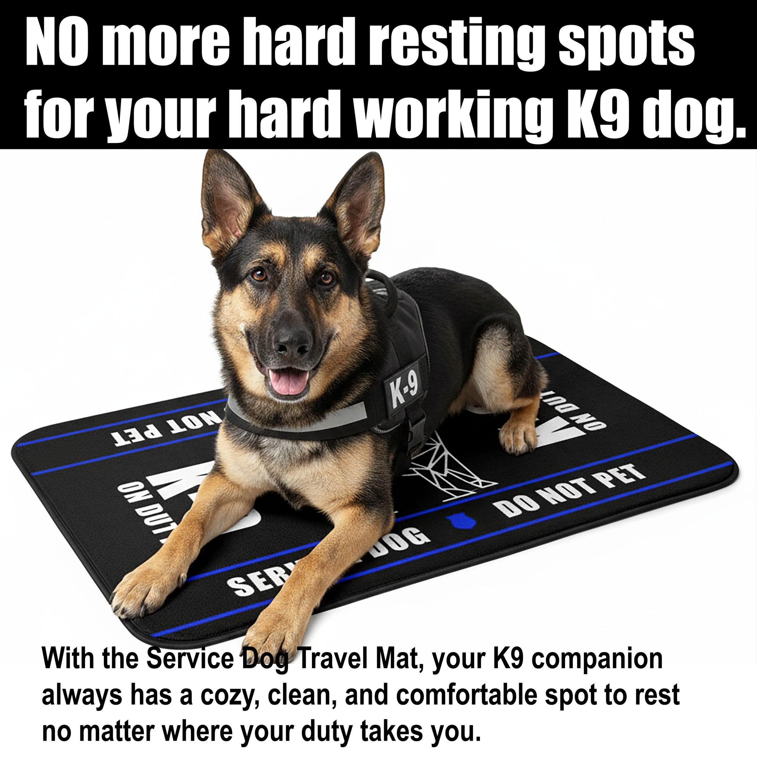 Give your working K9 the comfort, stability, and visibility they need during deployments, training, or downtime. Designed specifically for service and working dogs, this mat provides a designated resting area while reinforcing their status as active-duty K9s.