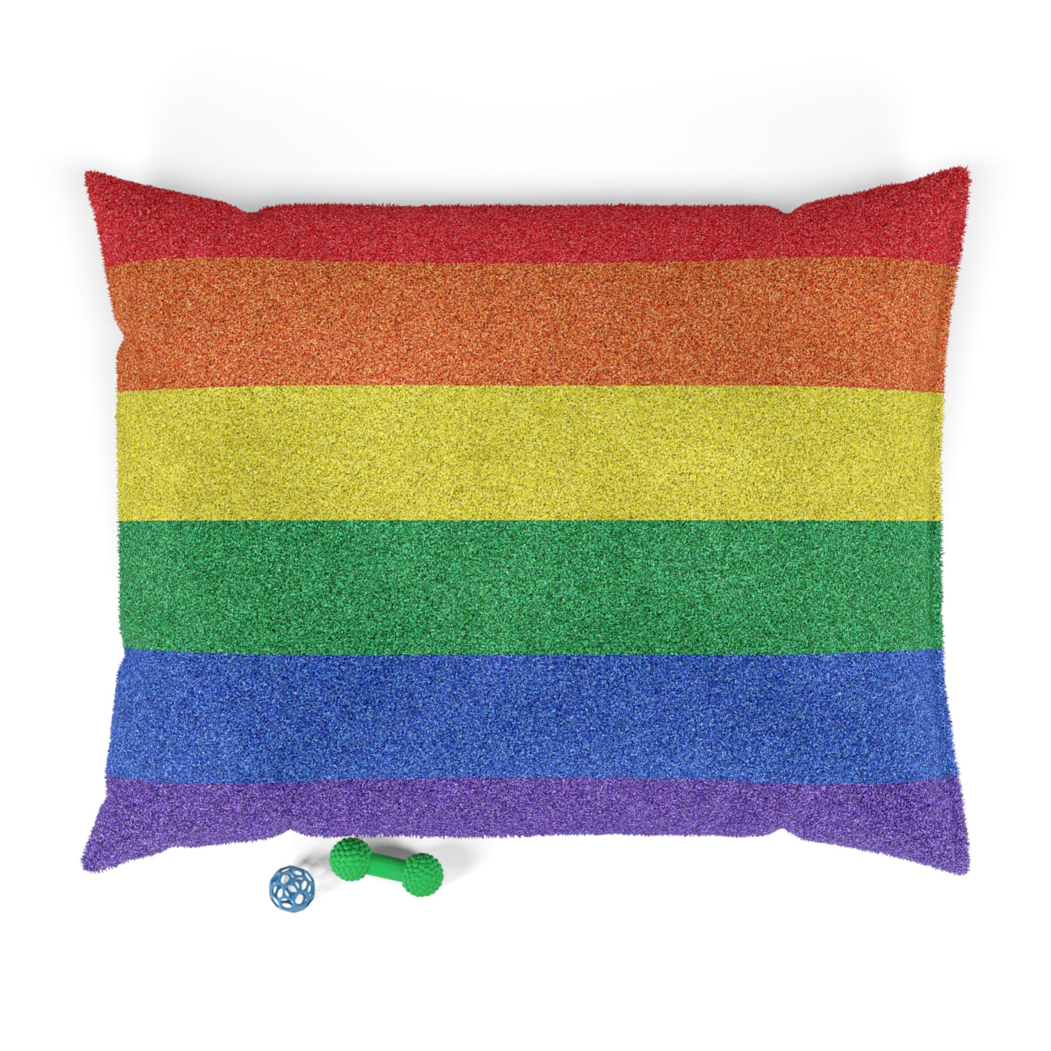 Whether your dog is a retired K9, a seasoned hunting partner, the "roving home security system" of your property, or the spoiled and pampered beloved furry family member, this Rainbow Pride Flag pattern pet ped provides the pride look you love with the soft comfort they deserve. Give your pet a cozy space that celebrates love, identity, and inclusivity. This LGBTQ Pride Rainbow Pet Bed features a bold, vibrant print on a feather-soft fleece surface. Perfect for pets who deserve comfort and style. Whether you're part of the community or a proud ally, this bed is a colorful way to show it. Designed with a durable cotton duck underside and a plush fleece top, it’s the perfect indoor retreat for your furry family member.