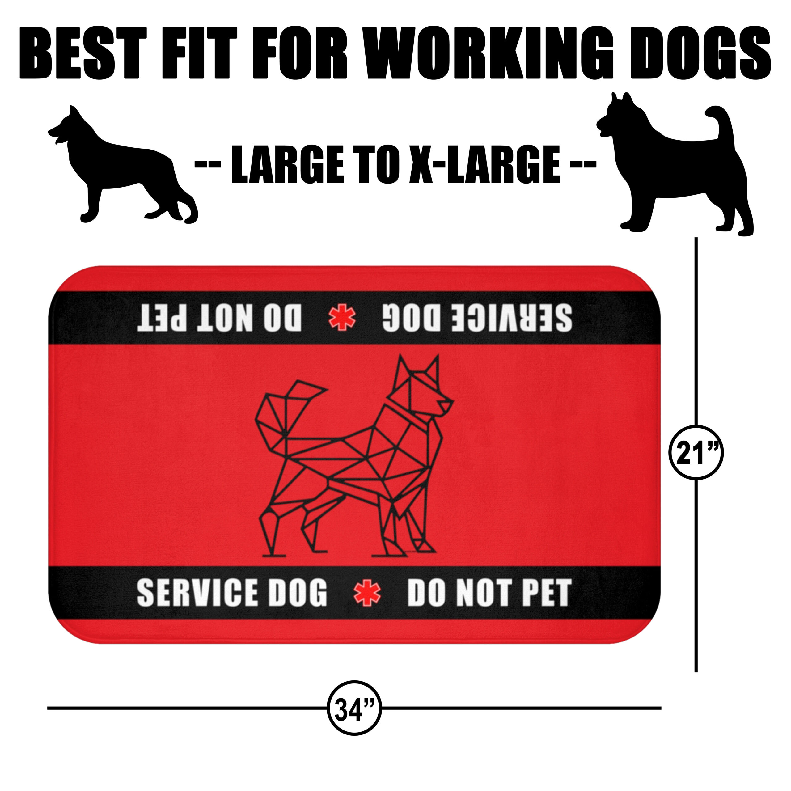 34” x 21” – Spacious, Comfort-First, Extra Coverage. Perfect for large service dogs who need more room to stretch and rest comfortably. Great for cars, waiting rooms, long travel days, or extended outings.