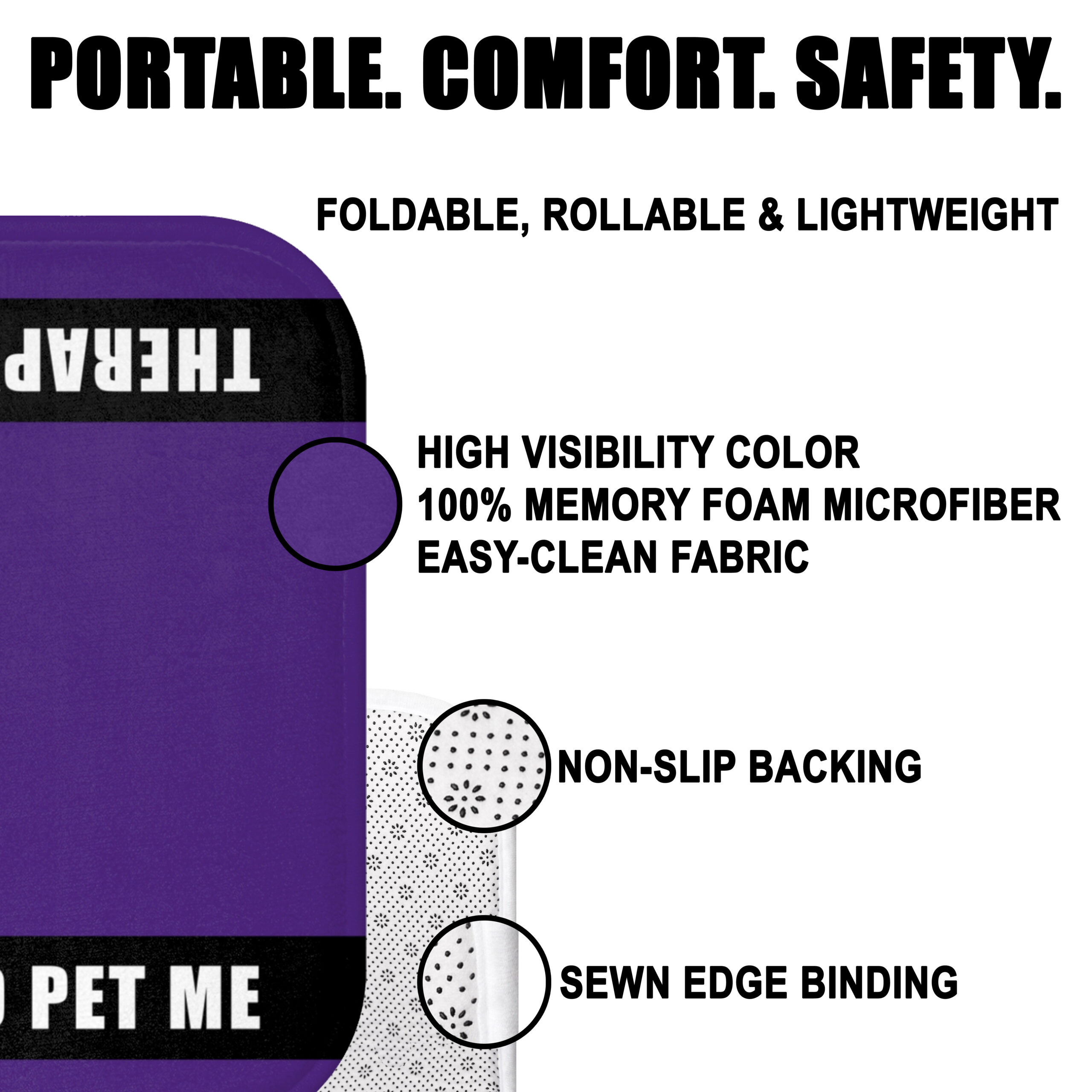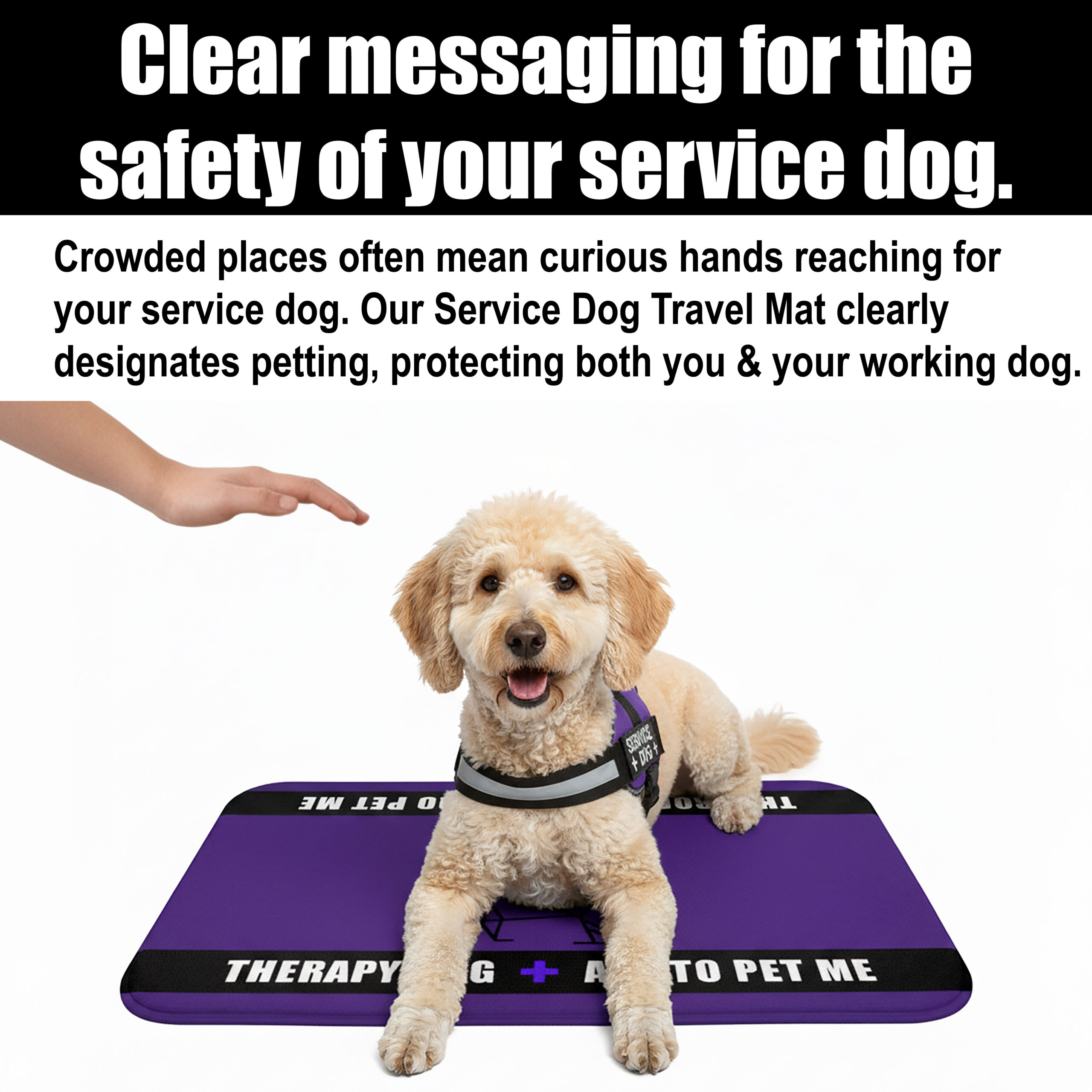 Give your therapy or service dog a comfortable and professional resting spot with this Therapy Dog Travel Mat. Designed with durability and convenience in mind, this mat is perfect for clinics, schools, airports, waiting rooms, or on-the-go. The bold purple design with “Therapy Dog + Ask to Pet Me” messaging provides a clear, friendly signal to the public while ensuring your companion has a dedicated spot to relax.